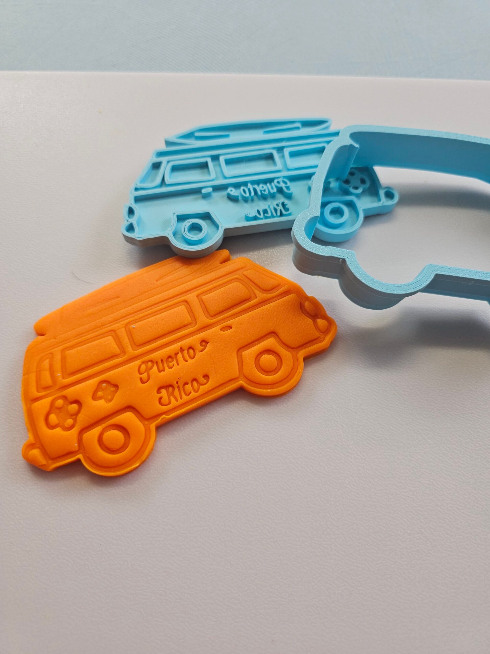 Celebrate vintage vibes and island pride with this Hippie Van Cookie Cutter & Stamp – Puerto Rico Edition. Inspired by the classic vans of the 1960s, this design features the beloved Kombi style with the word “Puerto Rico” embossed on its side, perfect for retro enthusiasts and Boricua creators alike.