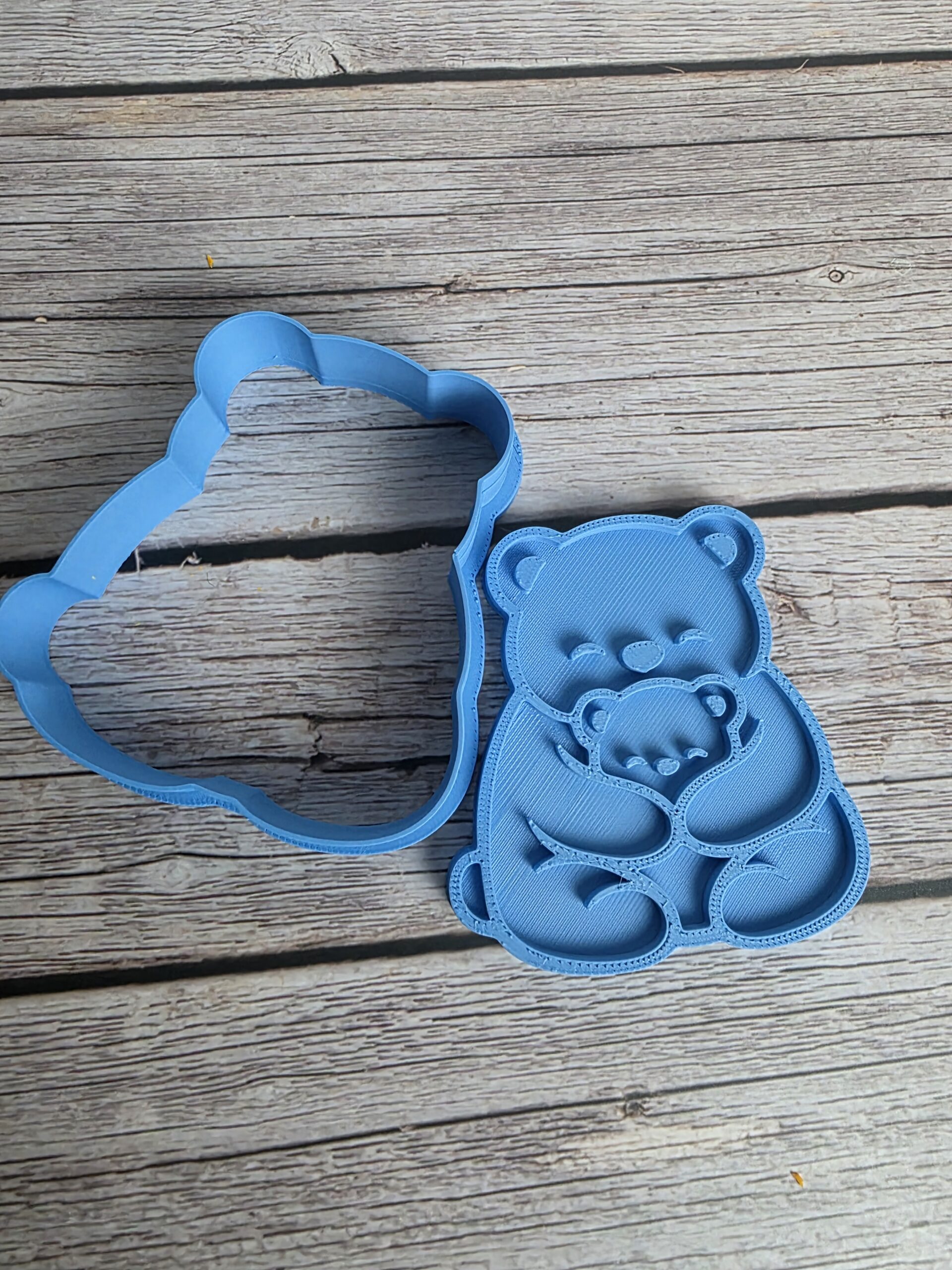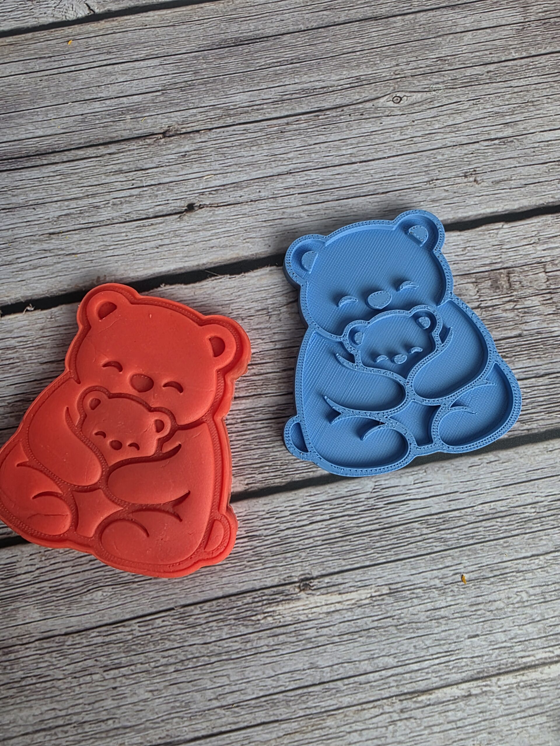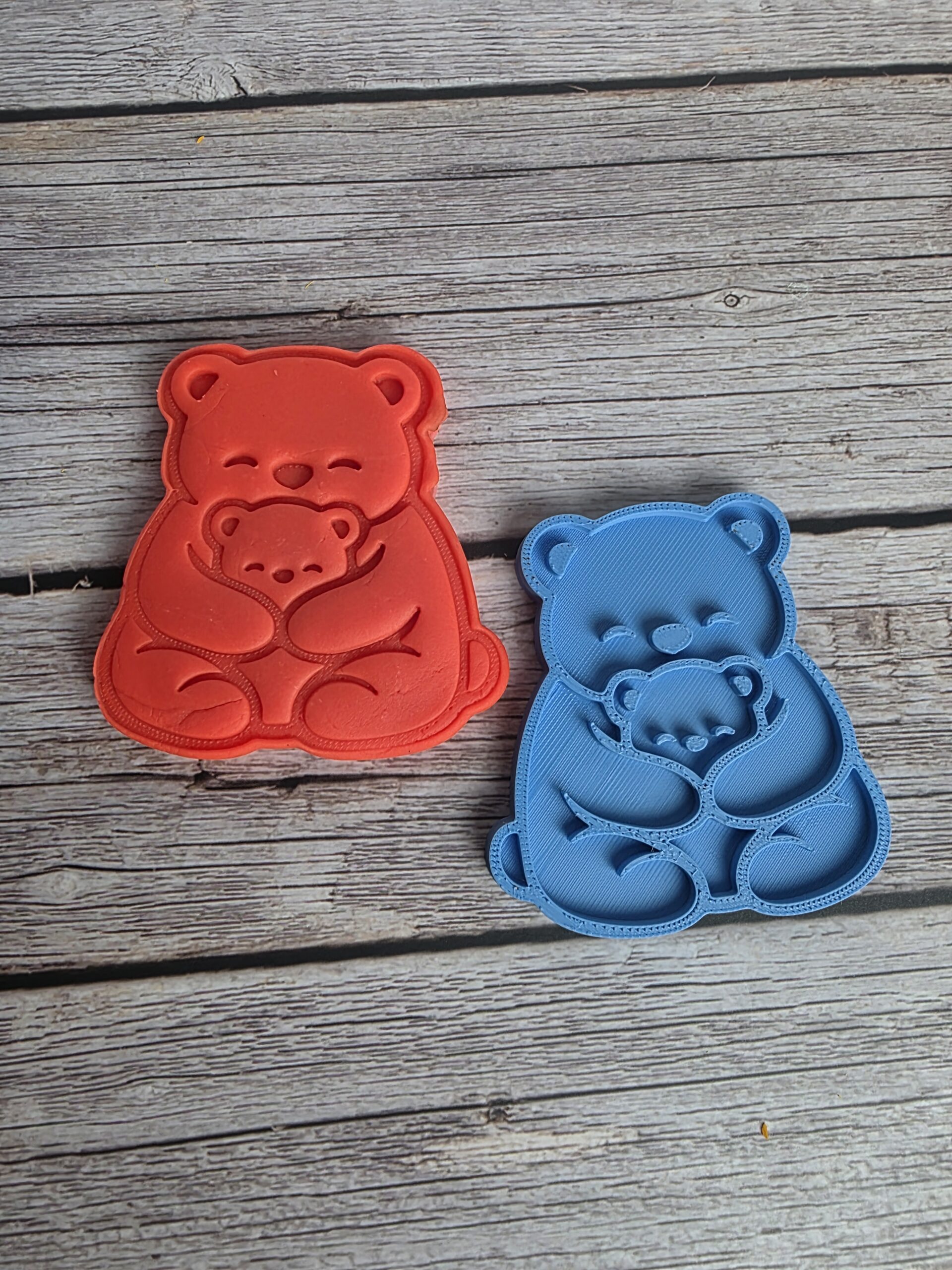 • Cutter with Stamp Only – Cuts the full mama bear and cub shape and embosses details like the faces, paws, and hugging pose. The stamp can be used directly on cookie dough or on fondant placed on top of the cookie.