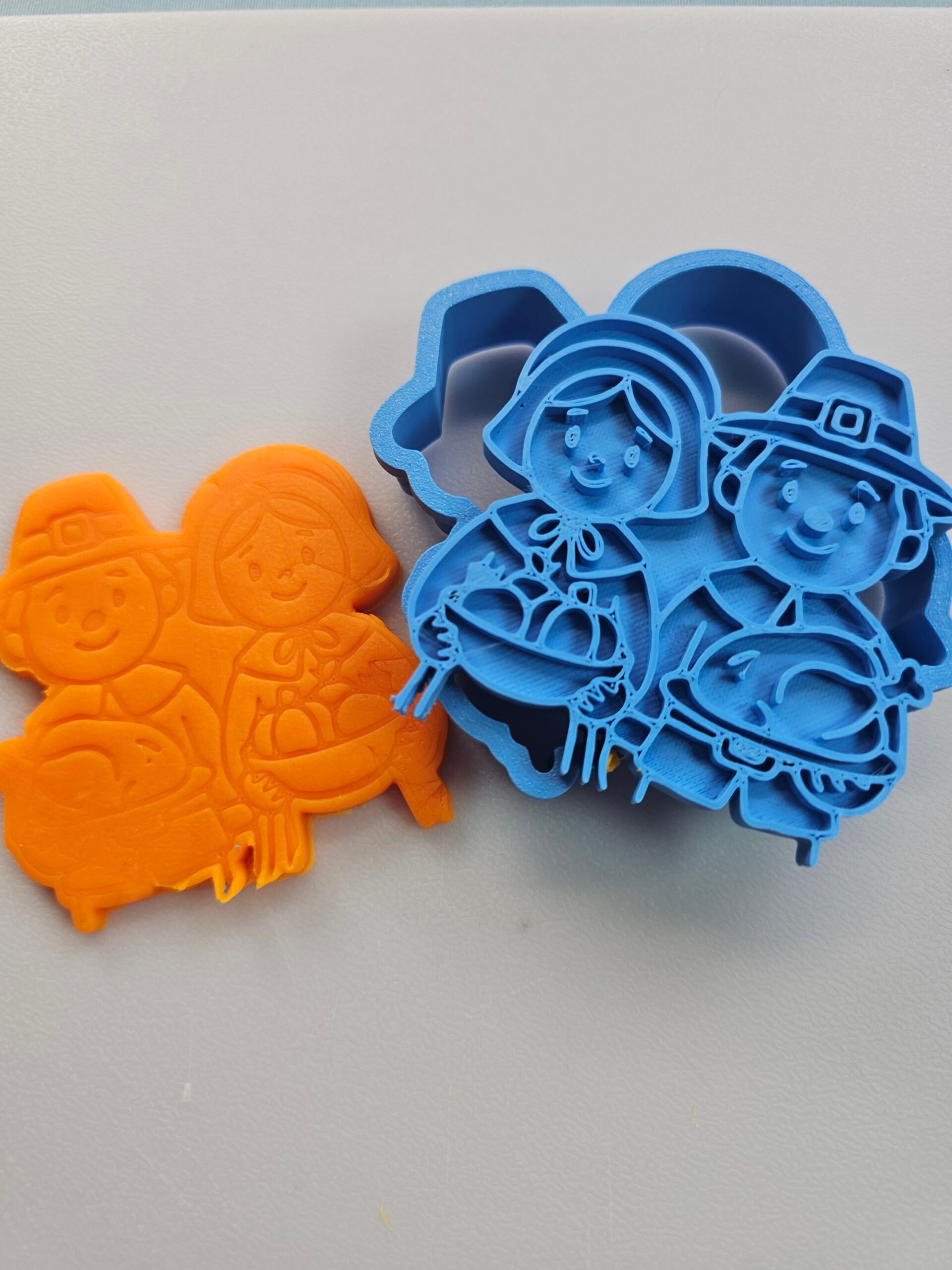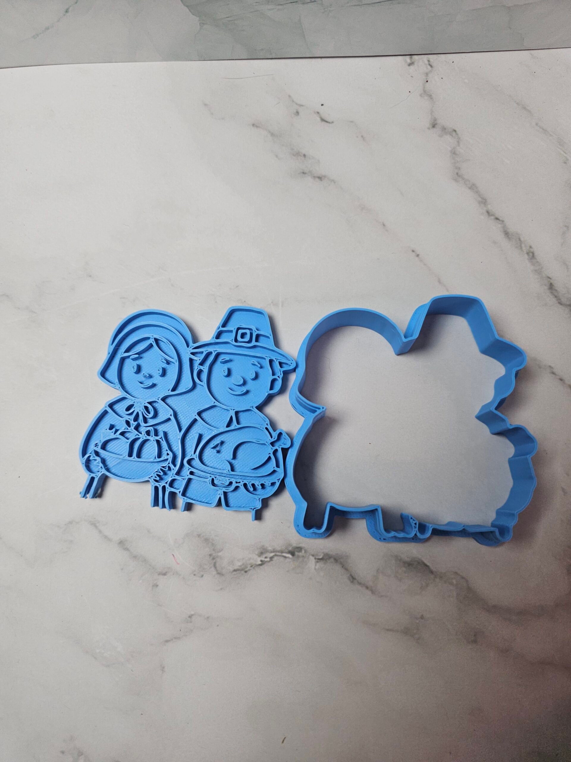 Celebrate gratitude and tradition with this charming Pilgrim Couple Cookie Cutter & Stamp. Featuring a sweet colonial-style couple dressed for Thanksgiving, this design brings warmth and history to your holiday baking. Perfect for seasonal cookie sets, fall gatherings, and handmade gifts.